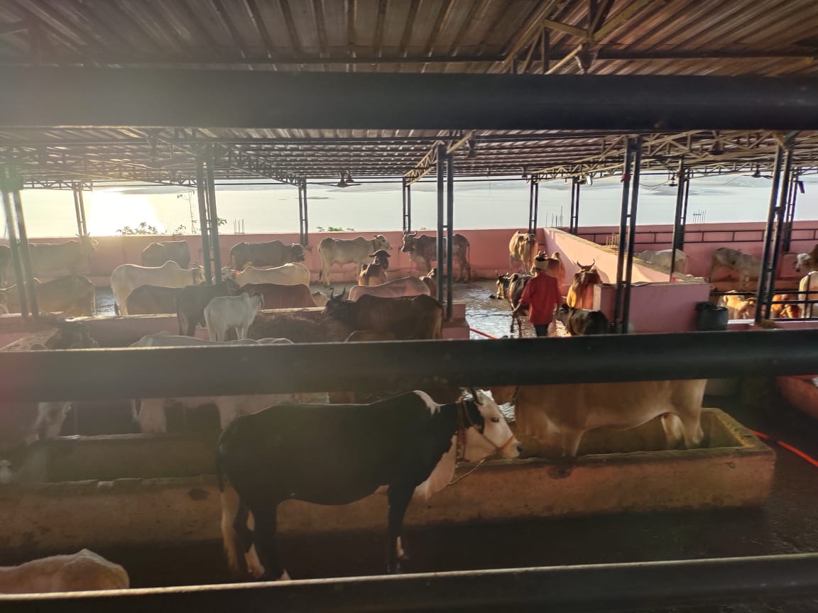 गौशाला की प्रदत्रक्षणा करता है।यहााँ के नीचे की ओर आते ही गायों ही गायों का दृश्य और सेवा का